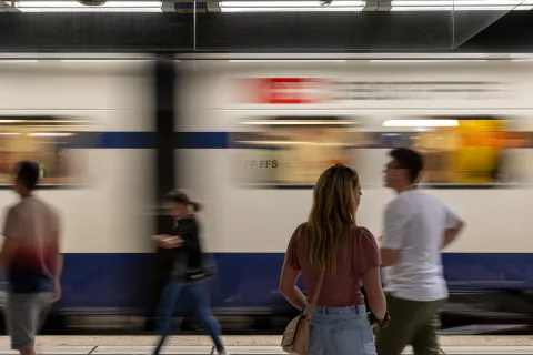 But SBB cannot solve this problem alone. The responsibility for safety is also shared by rail operators, cities, municipalities and the police. For this reason, SBB liaises closely with local authorities and deliberately focuses its resources on locations and times with increased potential for conflict. Video surveillance on trains and in stations together with emergency phone numbers and emergency call buttons on trains (with a direct connection to the SBB Transport Police) also help to make things safer.